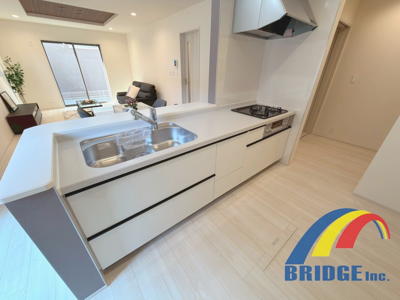 2号棟 料理をしながらリビング全体を見渡せるカウンターキッチン