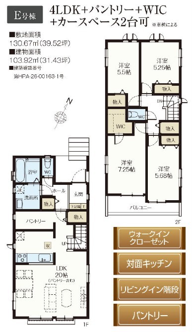 | 建築確認番号 | 第HPA-26-00163-1号 | 駐車スペース | 2台(カースペース:並列) |