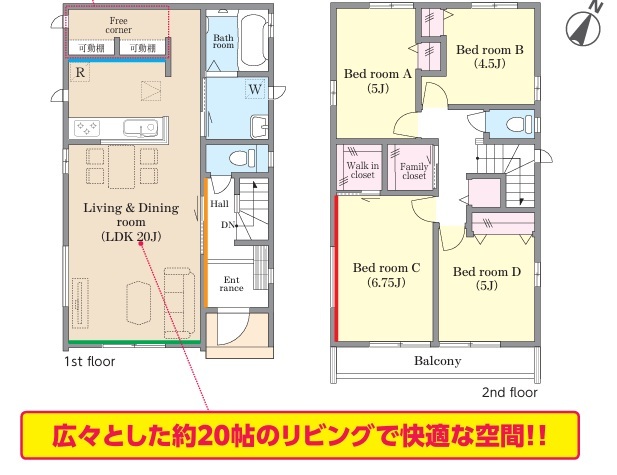 | 間取 | 4LDK + ファミリークローク、W.I.C (LDK20帖、洋室6.75帖、洋室5帖、洋室5帖、洋室4.5帖) | ||