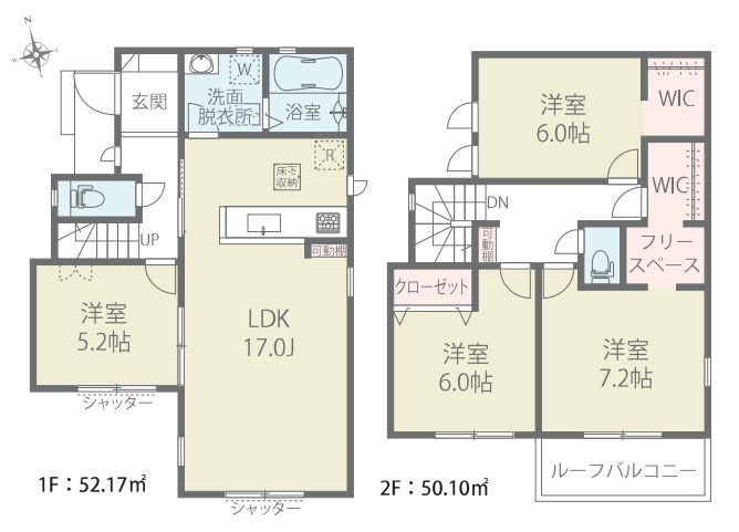 | 間取 | 4LDK + 階段下収納、WIC (LDK17帖、和室5.2帖、洋室7.2帖、洋室6帖、洋室6帖) | ||