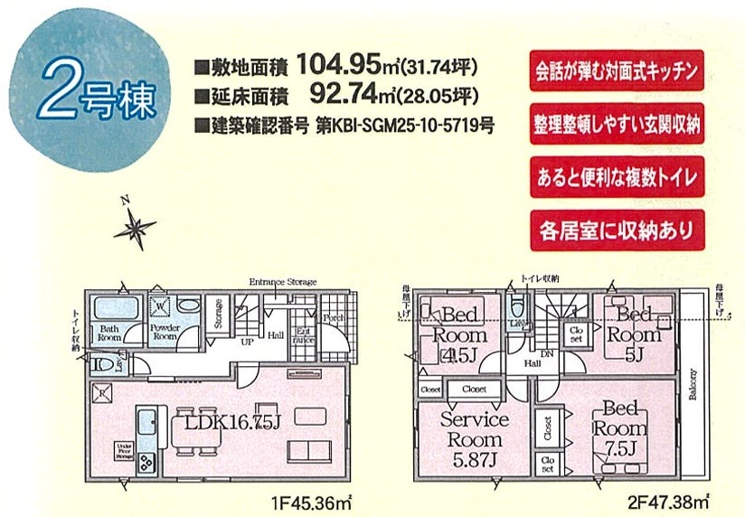 | 建築確認番号 | 第KBI-SGM25-10-5718号、他 | 駐車スペース | 2台可(カースペース) |