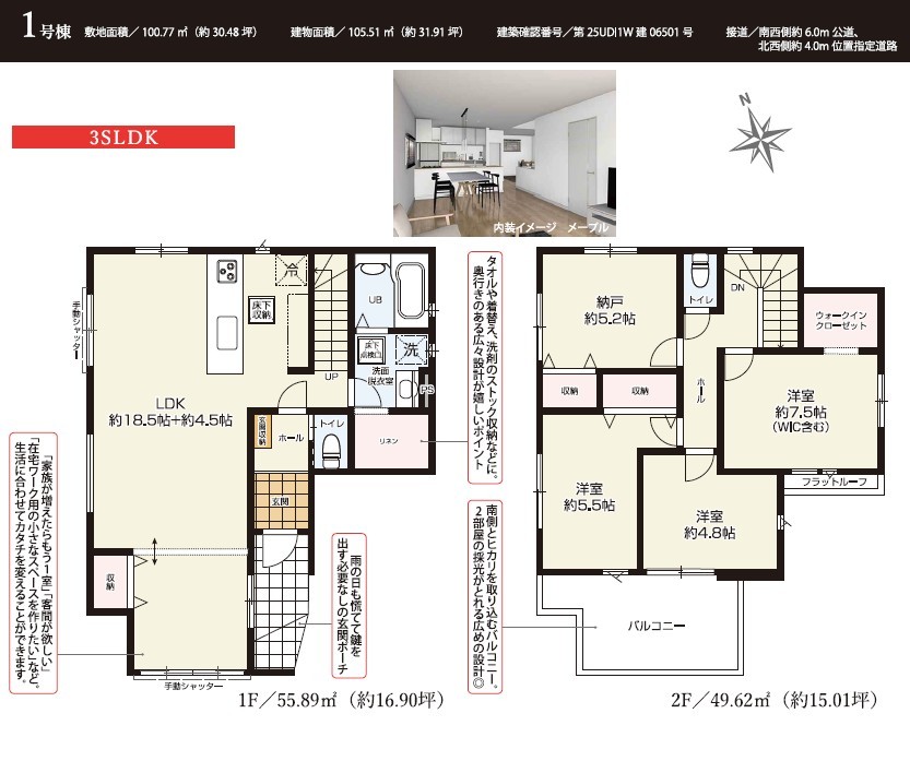 | 建物面積 | 105.51m² 公簿 | ||
