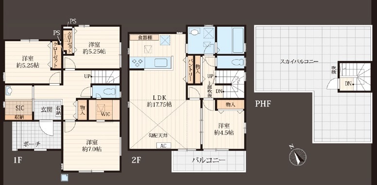 | 間取 | 4LDK (LDK17.75帖、洋室7帖、洋室5.25帖、洋室5.25帖、洋室4.5帖) | ||