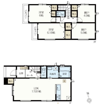 | 間取 | 2SLDK~2SLDK (LDK17.81帖、洋室6.18帖、洋室6帖、S5.5帖、S4.5帖) | ||