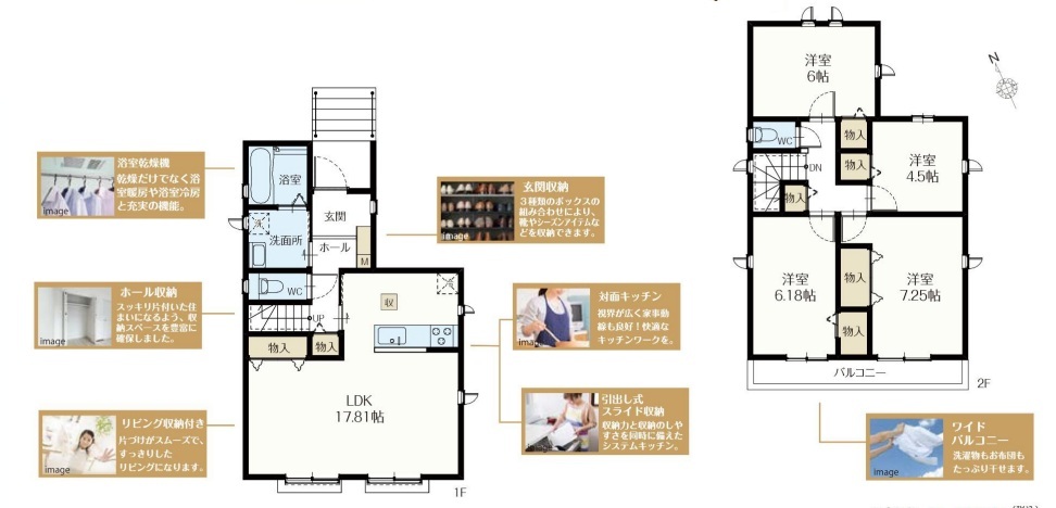 | 間取 | 4LDK (LDK17.81帖、洋室7.25帖、洋室6.18帖、洋室6帖、洋室4.5帖) | ||