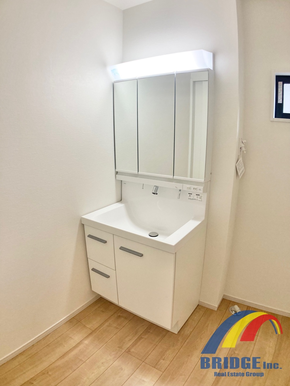 朝の身支度が快適な独立洗面台♪裏は収納になっており、お化粧道具もすっきり収納が出来ます!