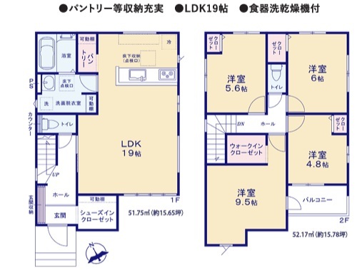 | 間取 | 4LDK + S.I.C、パントリー、W.I.C (LDK19帖、洋室9.5帖、洋室6帖、洋室5.6帖、洋室4.8帖) | ||