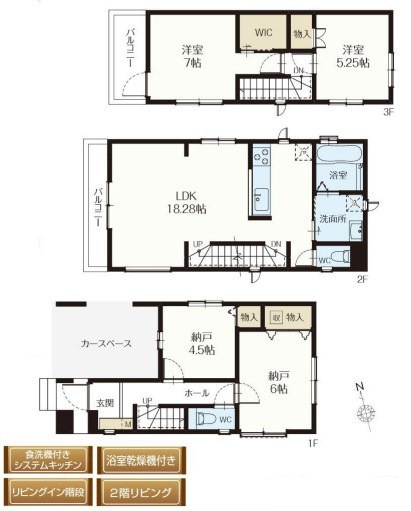 | 間取 | 2SLDK~2SLDK (LDK18.28帖、洋室7帖、洋室5.25帖、S6.5帖、S4.5帖) | ||