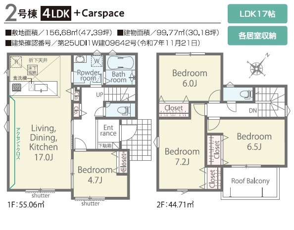 | 建築確認番号 | 第25UDI1W建09641号、他 | 駐車スペース | 2台(カースペース:並列) |