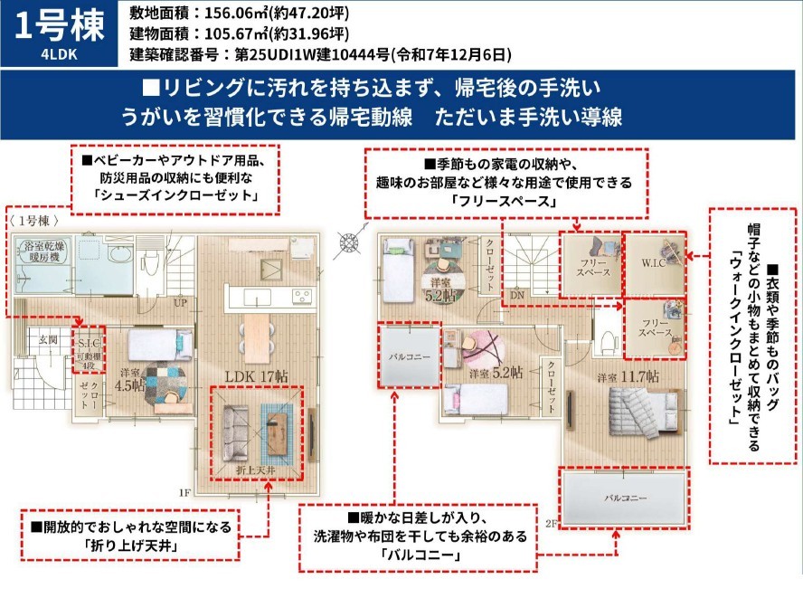 | 建築確認番号 | 第25UDI1W建10444号 | 駐車スペース | 2台(カースペース:並列) |