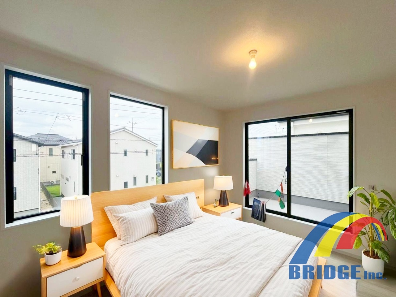 駐車2台可能で、使い勝手の良い2面バルコニー付きで用途によって使い分けられます。 主寝室には大型WICを完備。ご家族のお洋服などもすっきり収納できます。 是非、野田市内で新築一戸建てをお探しの方はお気軽にお問い合わせください。 お待ちしております。