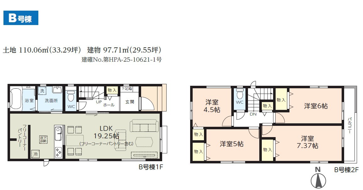 | 建築確認番号 | 第HPA-25-10621-1号 | 駐車スペース | 2台(カースペース:並列) |