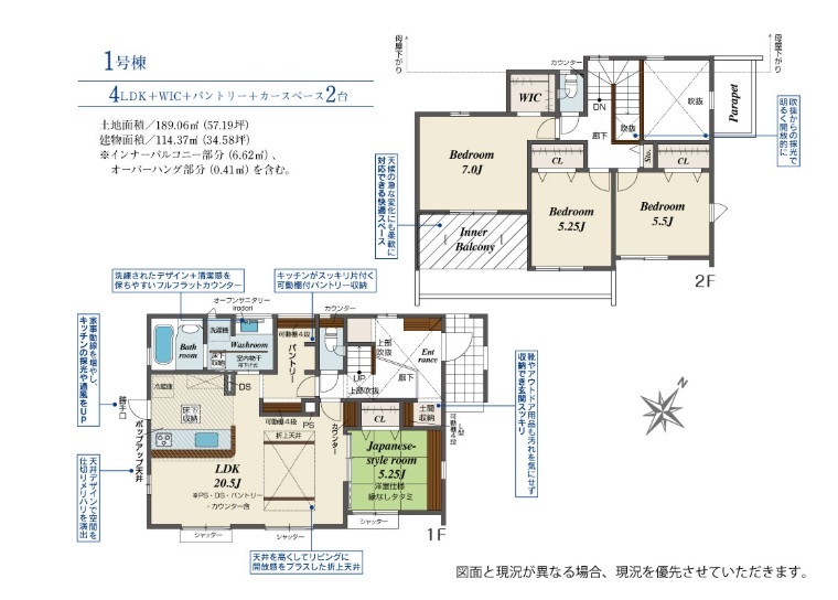 | 間取 | 4LDK + W.I.C、パントリー (LDK20.5帖、和室5.25帖、洋室7.0帖、洋室5.5帖、洋室5.25帖) | ||