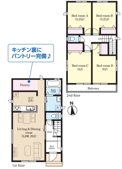 | 間取 | 4LDK~4LDK + LDK18帖以上・並列駐車2台可・収納豊富・ワイドバルコニー (LDK20帖、洋室6帖、洋室6帖、洋室5.25帖、洋室5.25帖) | ||