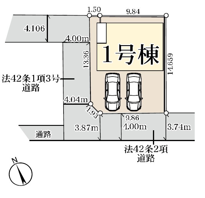 | 接道 | 南西側3.75M私道に接道 北西側3.75M私道に接道 |