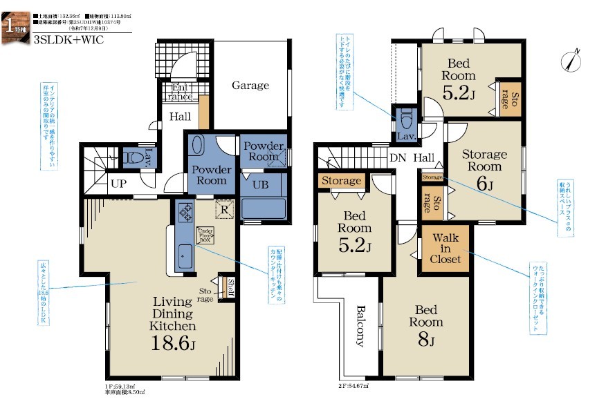 | 間取 | 3SLDK (LDK18.6帖、洋室8帖、洋室6帖、洋室5.2帖、洋室5.2帖) | ||