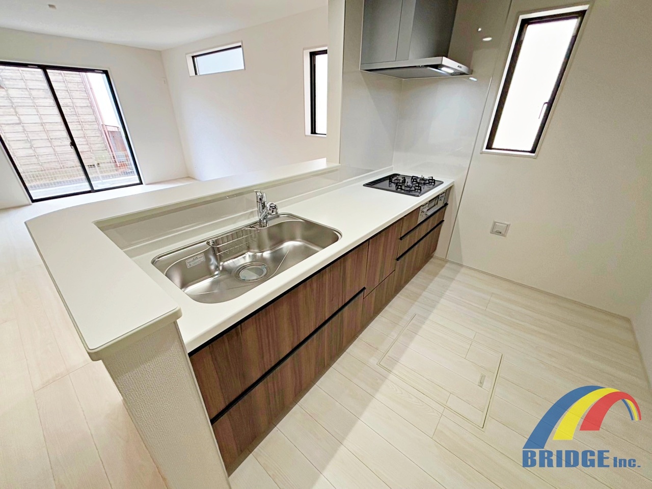料理をしながらリビング全体を見渡せるカウンターキッチン