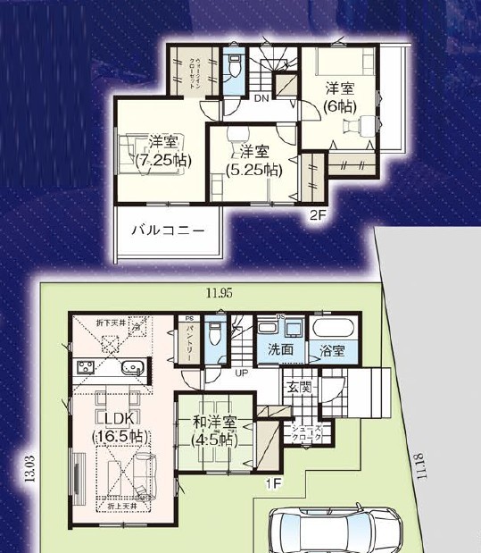 | 間取 | 4LDK + SIC・WIC・パントリー・2階ホール収納・和洋室 (LDK16.5帖、和室4.5帖、洋室7.25帖、洋室6帖、洋室5.25帖) | ||
