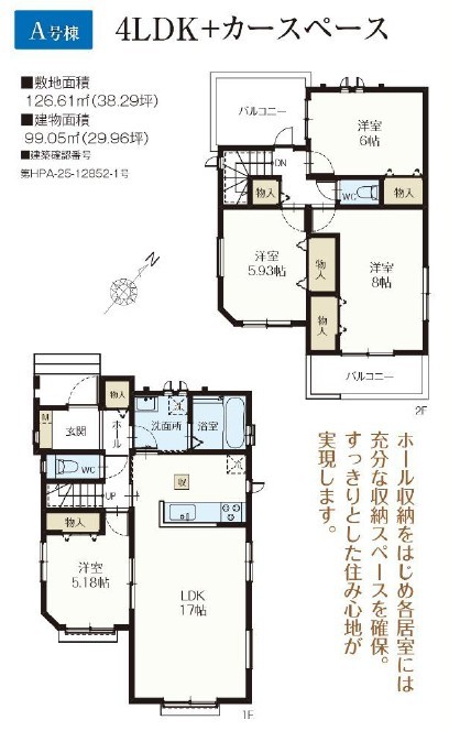 | 建築確認番号 | 第HPA-25-12852-1号、他 | 駐車スペース | 1台(カースペース) |