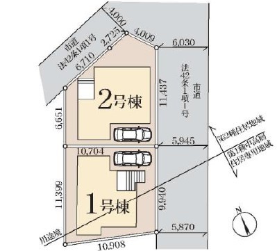 | 地目 | 宅地 | 用途地域 | 第一種中高層住居専用地域/第二種住居地域 |