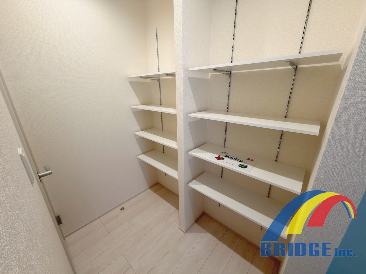 1号棟 キッチン用品や食品ストックもすっきり収納ができます (パントリー)