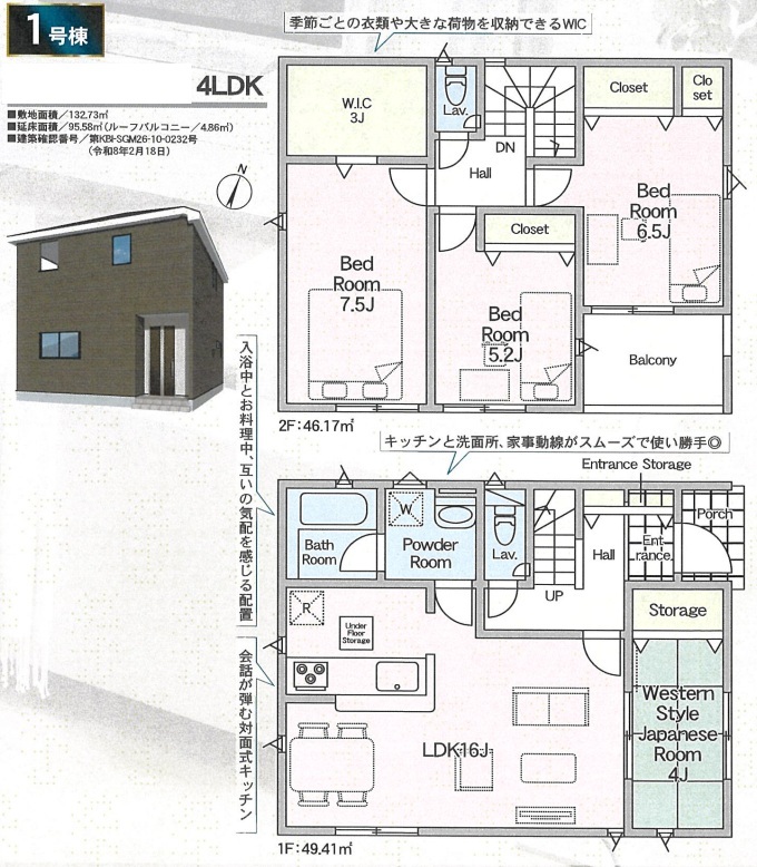 | 間取 | 4LDK + 和室・WIC・ワイドバルコニー (LDK16帖、和室4帖、洋室7.5帖、洋室6.5帖、洋室5.2帖) | ||