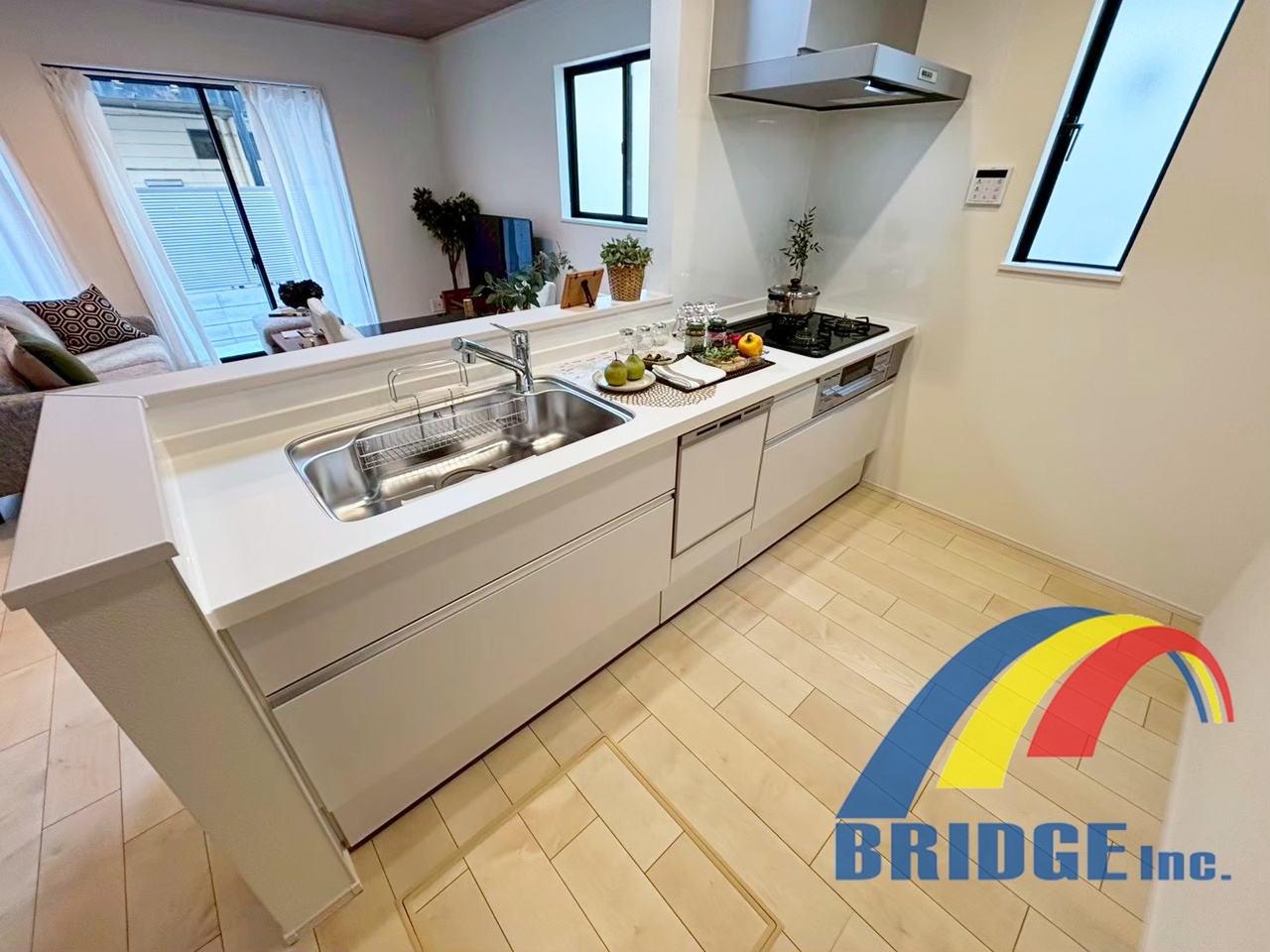B号棟 料理をしながらリビング全体を見渡せるカウンターキッチン