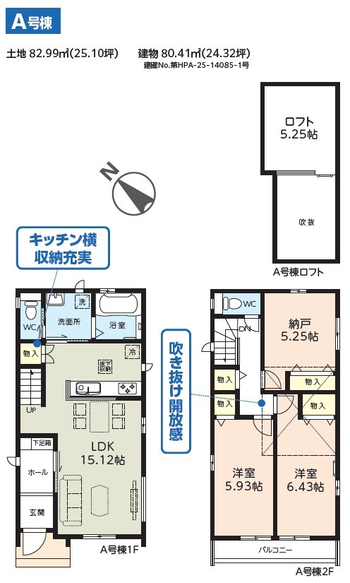 | 建築確認番号 | 第HPA-25-14085-1号、他 | 駐車スペース | 2台(カースペース:並列) |
