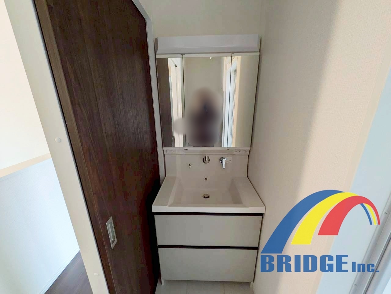2号棟 朝の身支度が快適な独立洗面台♪裏は収納になっており、お化粧道具もすっきり収納が出来ます!