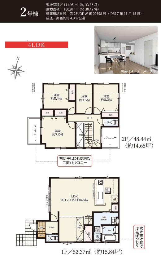 | 建築確認番号 | 第25UDI1W建09358号 | 駐車スペース | 2台(カースペース) |