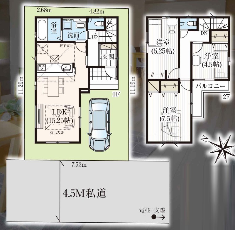 | 間取 | 3LDK (LDK15.25帖、洋室7.5帖、洋室6.25帖、洋室4.5帖) | ||