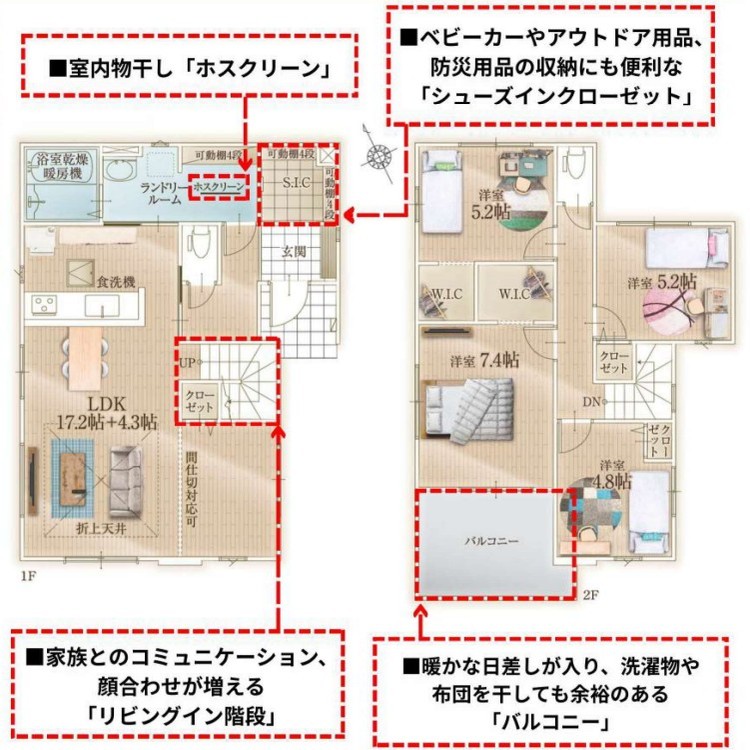 WIC・SIC・全居室収納付きでお荷物スッキリ