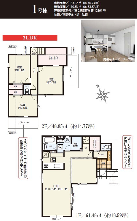 | 建築確認番号 | 第25UDI1W建12840号、他 | 駐車スペース | 2台(カースペース:並列) |