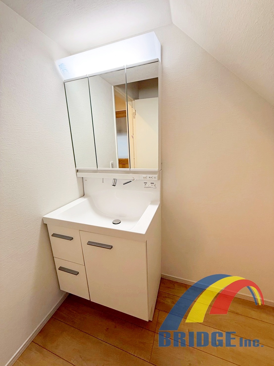 1号棟 朝の身支度が快適な独立洗面台♪裏は収納になっており、お化粧道具もすっきり収納が出来ます!