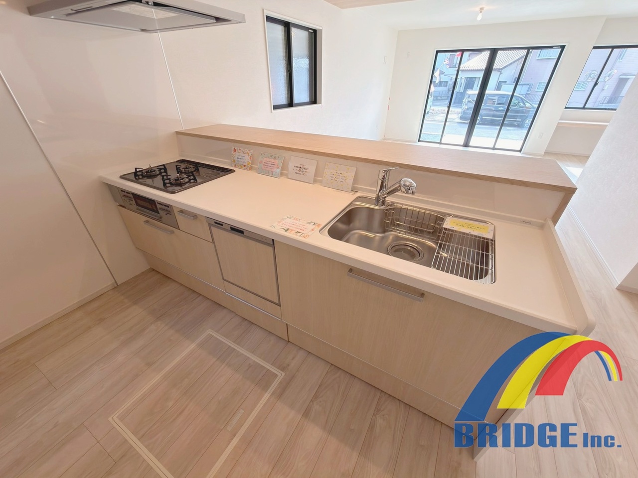 2号棟 料理をしながらリビング全体を見渡せるカウンターキッチン