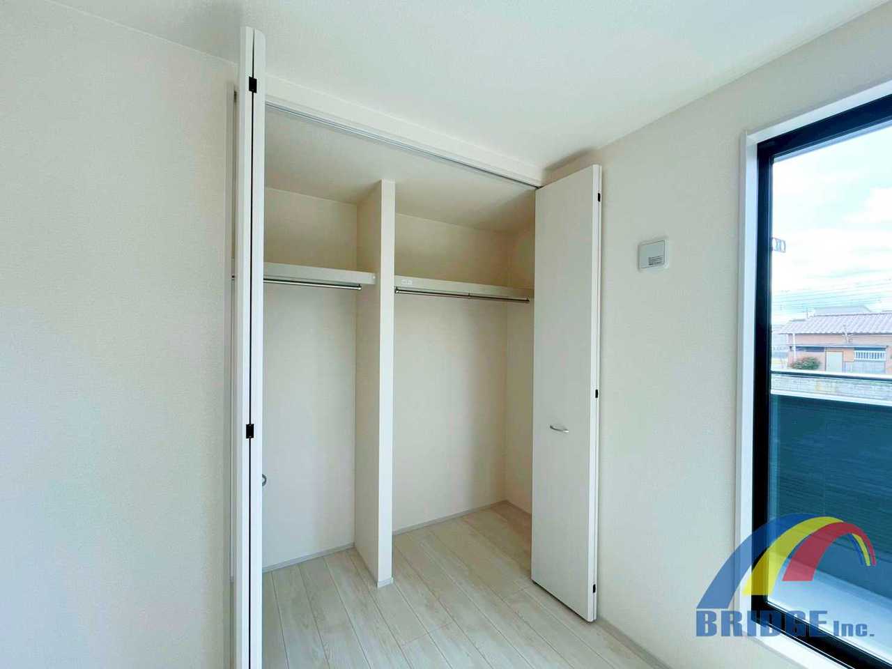 主寝室には広々収納付き、衣類以外もたっぷり収納ができます。