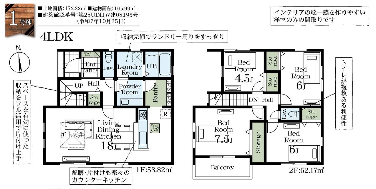| 建築確認番号 | 第25UDI1W建08193号 | 駐車スペース | 2台(カースペース:並列) |