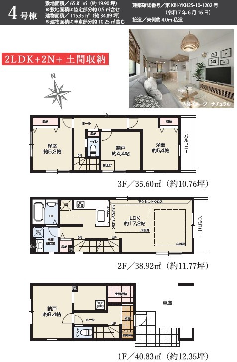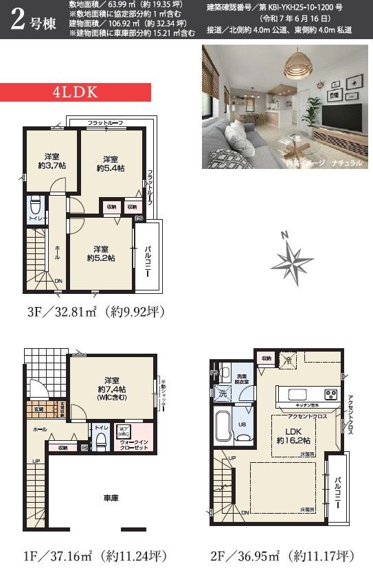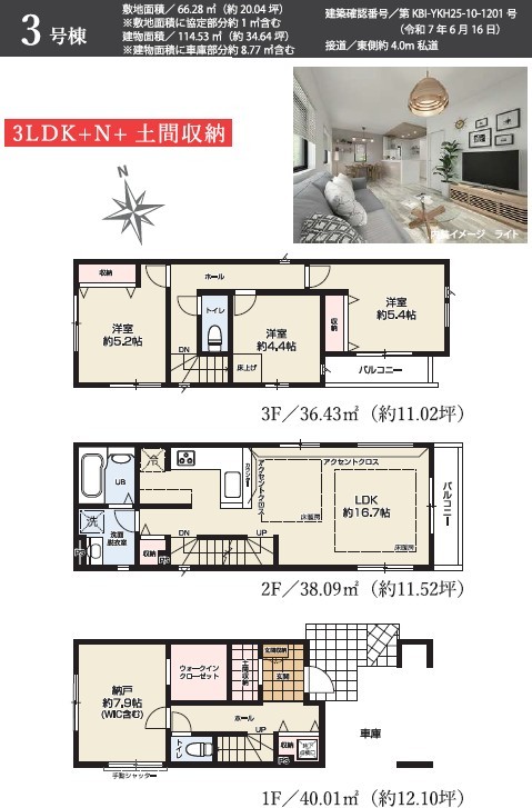 | 建築確認番号 | 第KBI-YKH25-10-1200号、他 | 駐車スペース | 1台(車庫) |