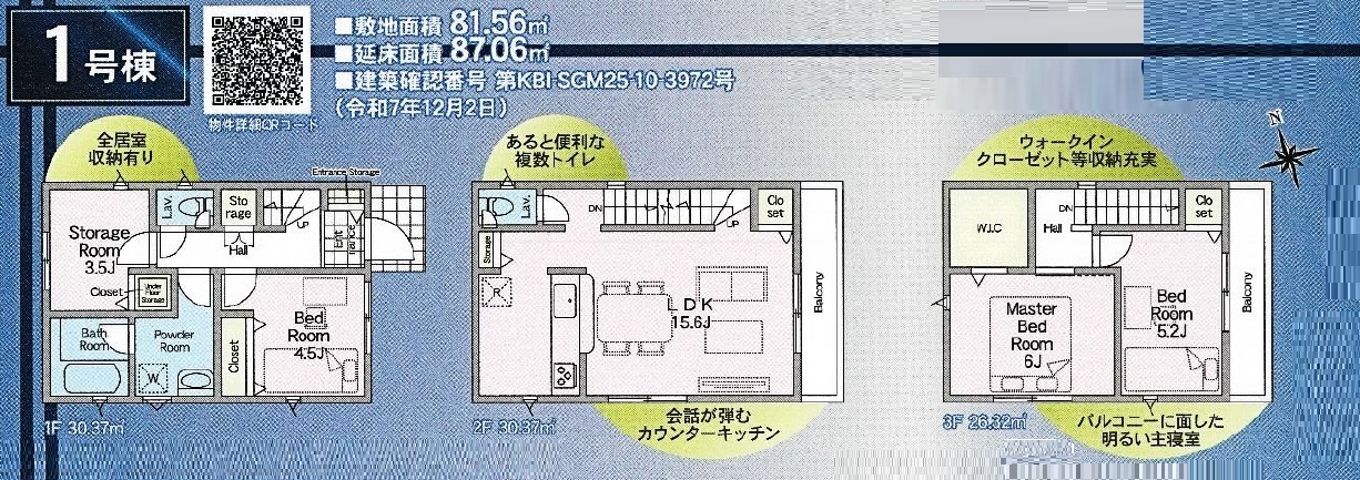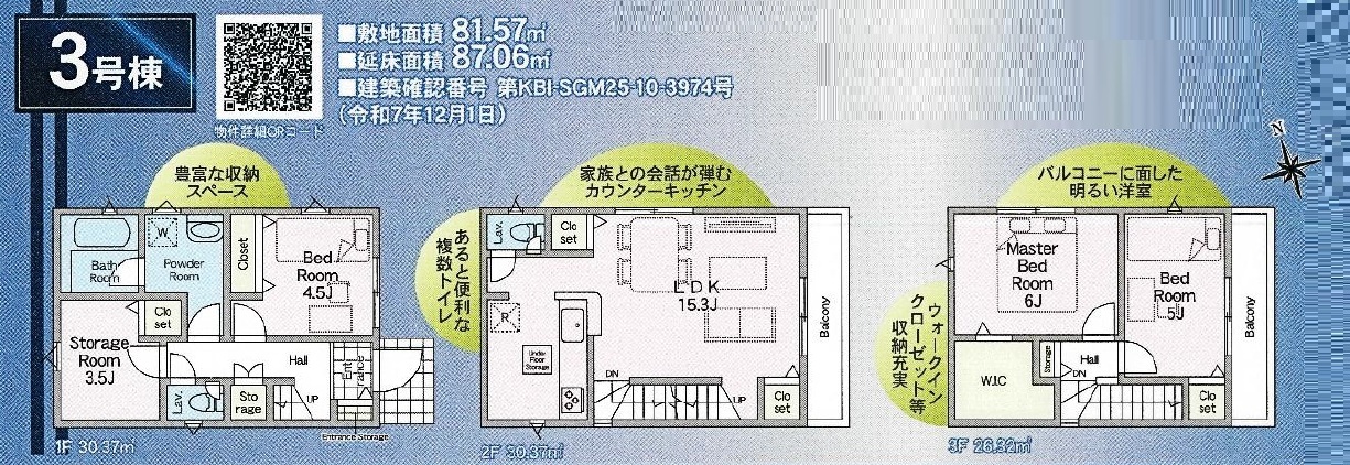 | 建築確認番号 | 第KBI-SGM25-10-3972号、他 | 駐車スペース | 1台(カースペース:並列) |