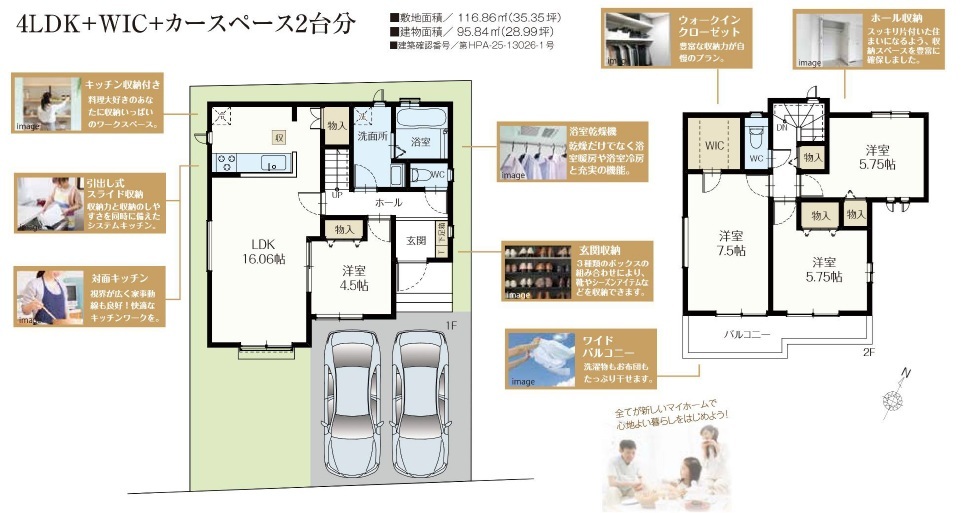 | 間取 | 4LDK + キッチン収納 (LDK16.06帖、洋室4.5帖、洋室7.5帖、洋室5.75帖、洋室5.75帖) | ||
