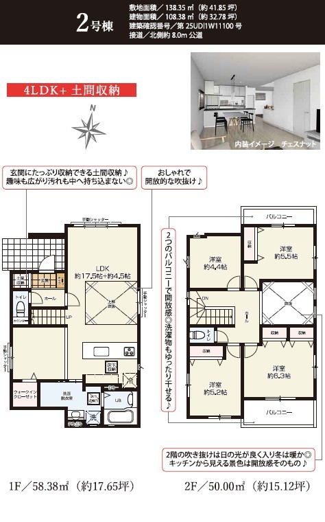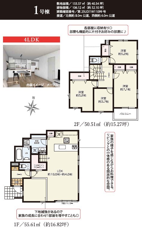| 建物面積 | 106m² ~ 108m² 公簿 | ||