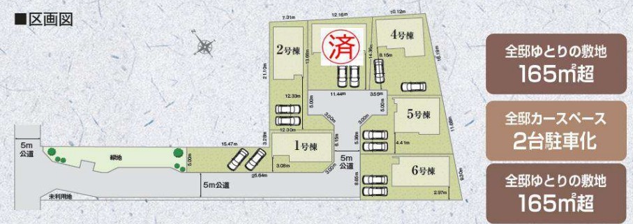 - 街並み綺麗な分譲地で全棟敷地広々49坪以上
