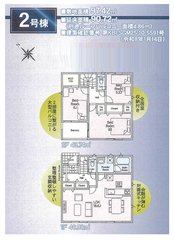 | 建築確認番号 | 第KBI-SGM26-10-5590号、他 | 駐車スペース | 1台(カースペース:並列) |