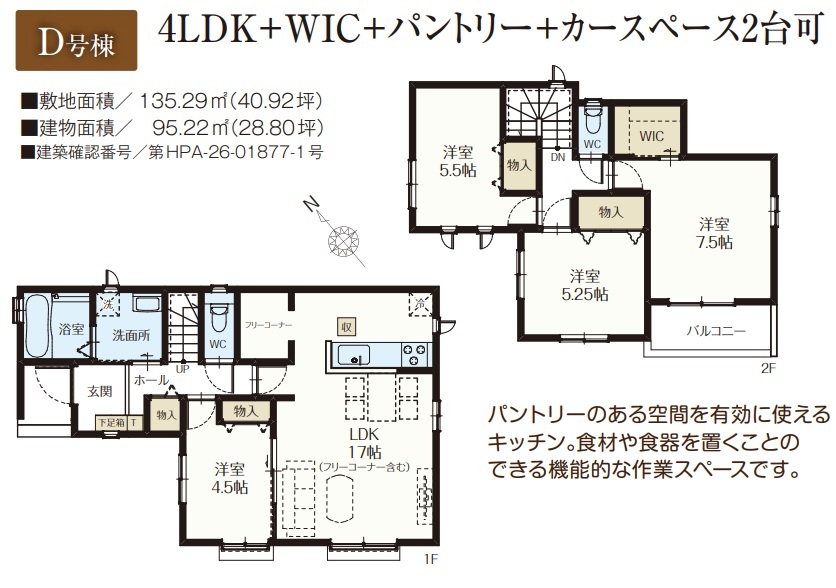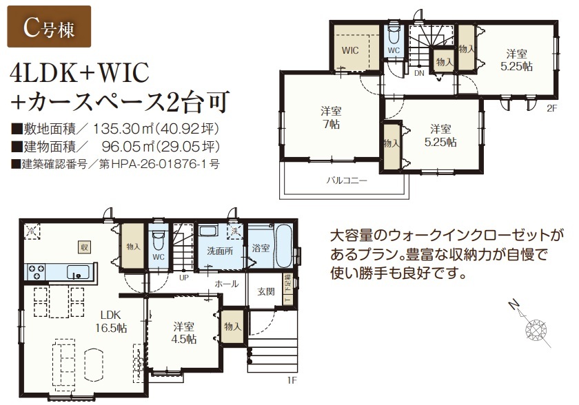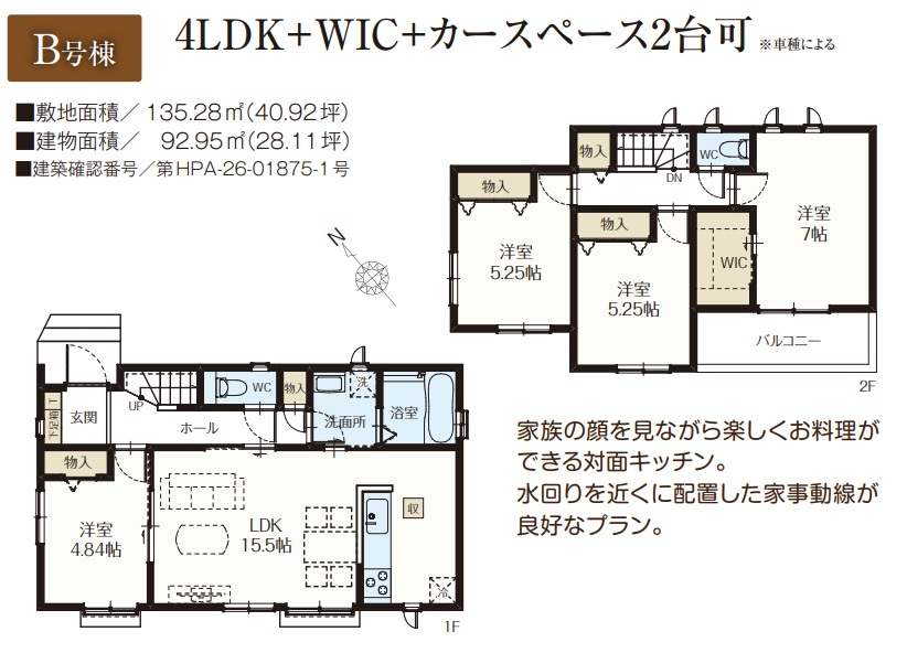 | 建築確認番号 | 第HPA-26-01874-1号、他 | 駐車スペース | 2台(カースペース:縦列) |