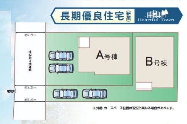 | 建築確認番号 | 第HPA-26-03253-1号、他 | 駐車スペース | 2台(カースペース:縦列) |