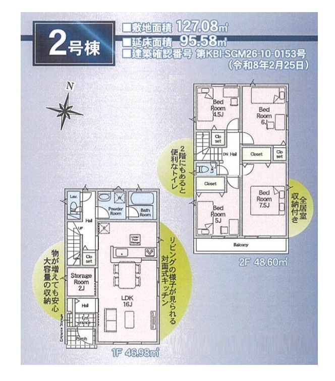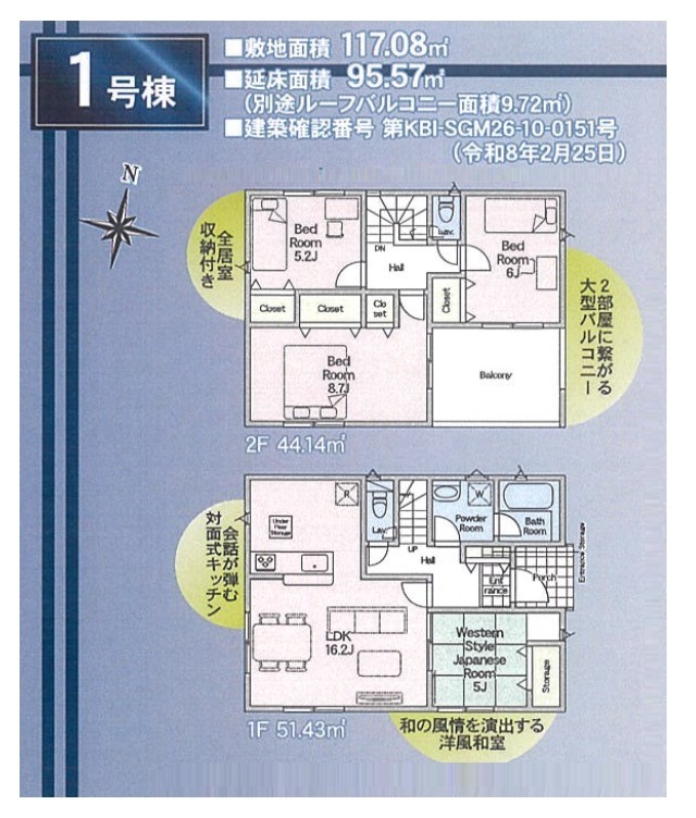 | 建築確認番号 | 第KBI-SGM25-10-0151号、他 | 駐車スペース | 1台(カースペース:並列) |