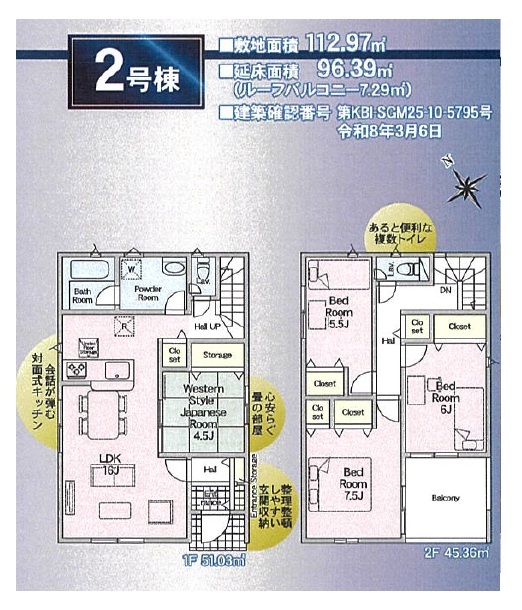 | 建物面積 | 95.98m² ~ 96.39m² 公簿 | ||