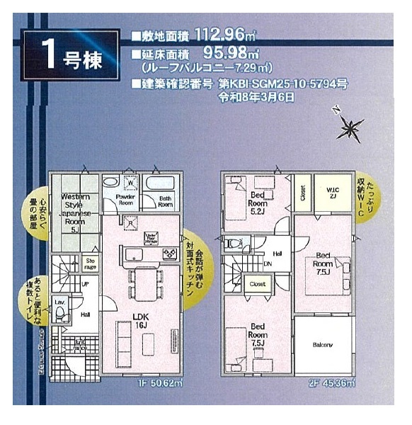 | 建築確認番号 | 第KBI-SGM25-10-5794号、他 | 駐車スペース | 1台(カースペース) |