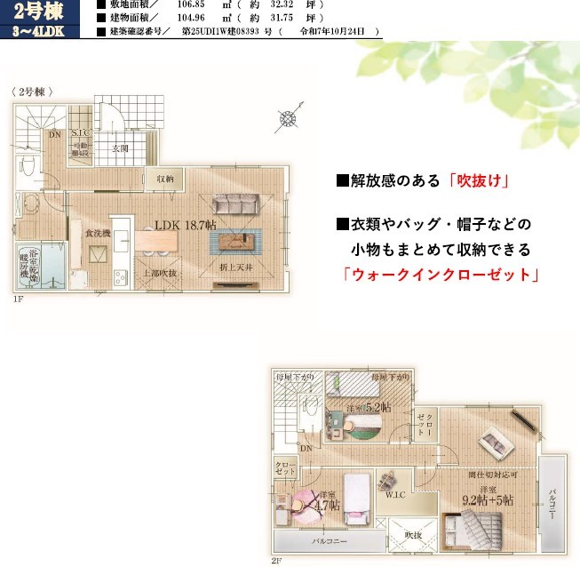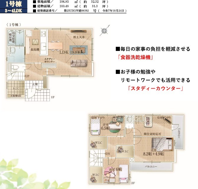 | 建築確認番号 | 第25UDI1W建08392号、他 | 駐車スペース | 2台(カースペース) |