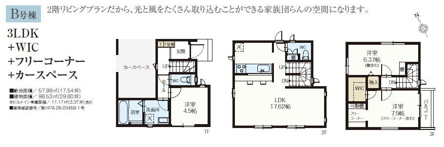 B号棟 駐車1台可能で、明るい2階リビング 収納豊富な3階建。 フリーコーナー、WIC等嬉しいスペース付き。 最寄駅も選べる利便性の良い立地です。 是非、市川市内で新築一戸建てをお探しの方はお気軽にお問い合わせください。 お待ちしております。 同社同等仕様施工例